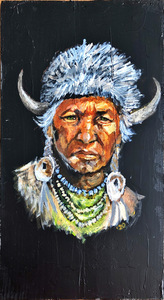 2020Indiaan geschilderd met acrylverf op de deksel van een wijnkistje